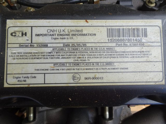 - Description CNH 450/NB Complete Engine Assembly