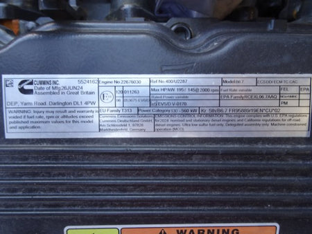 - Description 2024, 195HP/145kW, Stage V, Cummins B6.7 Complete Engine Assembly
